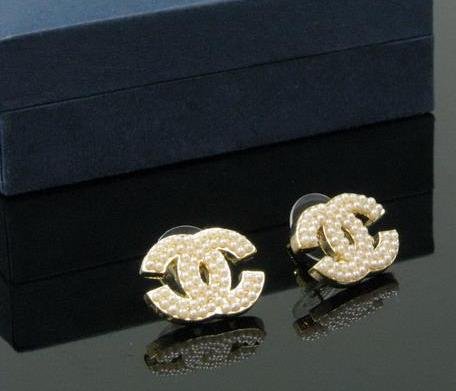 !±8± Designer Inspired CC double C PEARL Earrings,gold accent, medium size