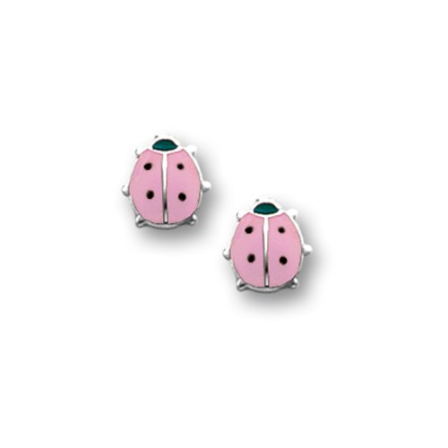 She'll enjoy the pretty-in-pink display of ladybugs presented on these sterling silver stud earrings. Screw-on back findings will keep this fun pair secure through all of her activities. Each earring is .35-inches in size and reveals a cheerful pink and black finish, outlining the well-known features of a ladybug.